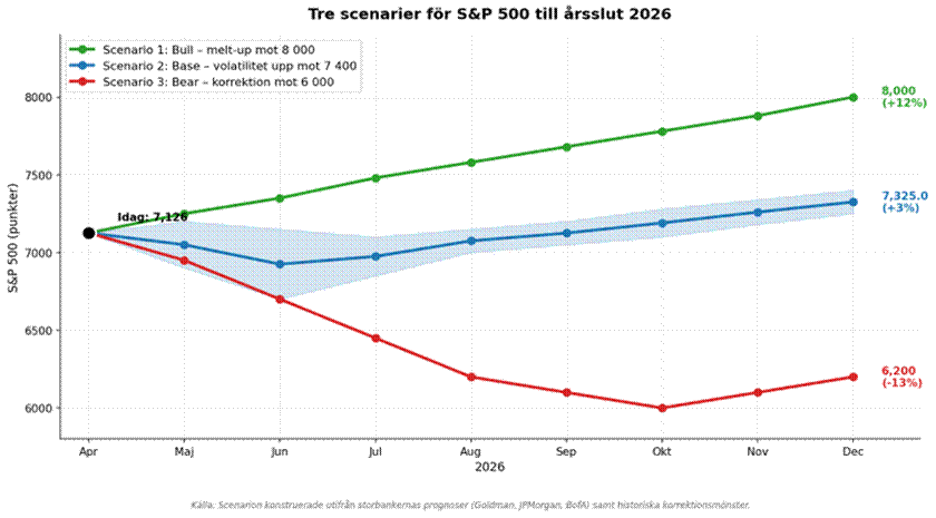 Tre scenarier för börsen till årsslut 2026.